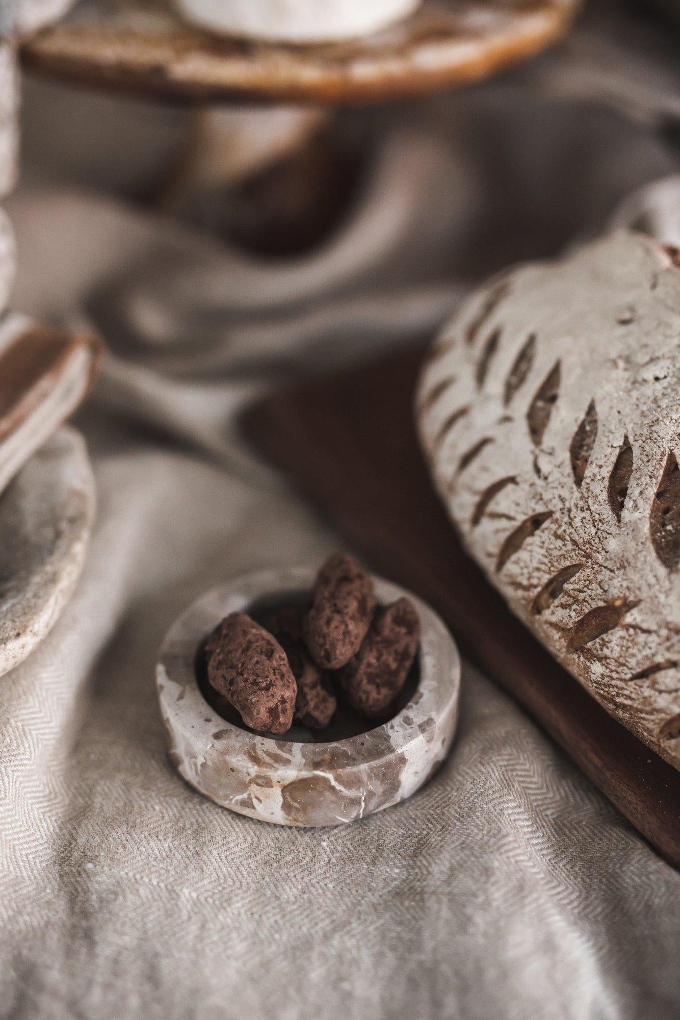 Kynnum Cora, litlu skálina sem bætir við lúxus í hið daglega líf! Cora er úr brúnum marmara frá regnskóginum og er meira en bara skál – hún er einstakt smáatriði í innanhússhönnun sem lyftir upp hönnun heimilisins. Notaðu hana sem skraut á hliðarborði eða til að geyma smáhluti og fylgihluti – hún hefur marga heillandi notkunarmöguleika! Þar sem marmari er einstakt efni geta lita- og mynsturbreytileikar komið fram – sem gerir skálina þína sannarlega einstaka.