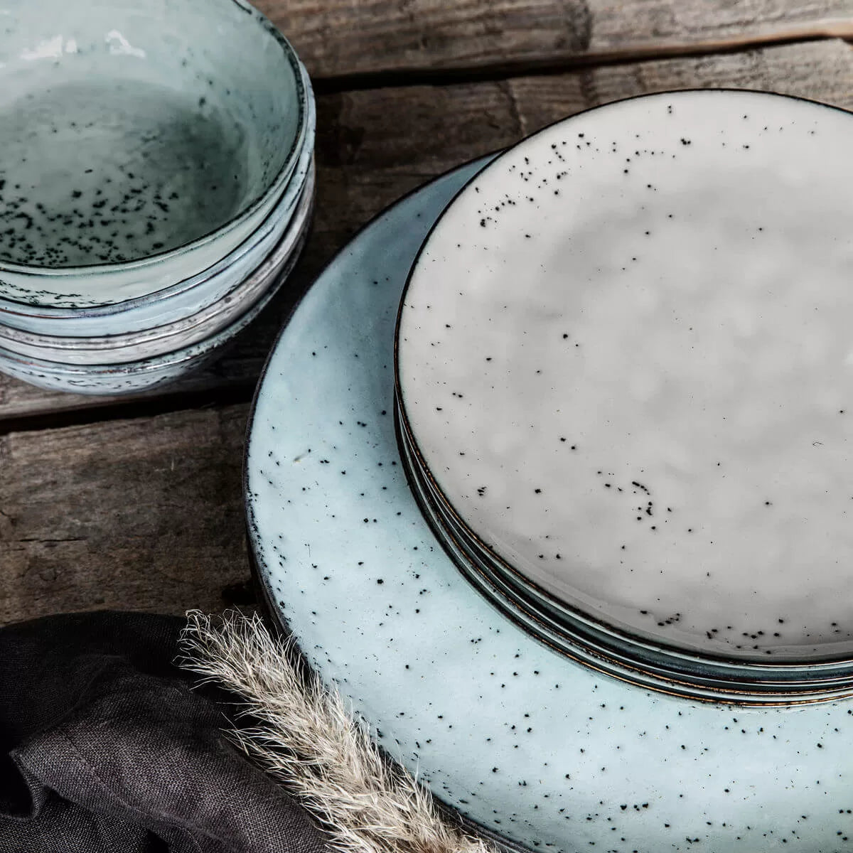 Rustic steinleirs borðbúnaðurinn getur verið misjafn að stærð og lögun.