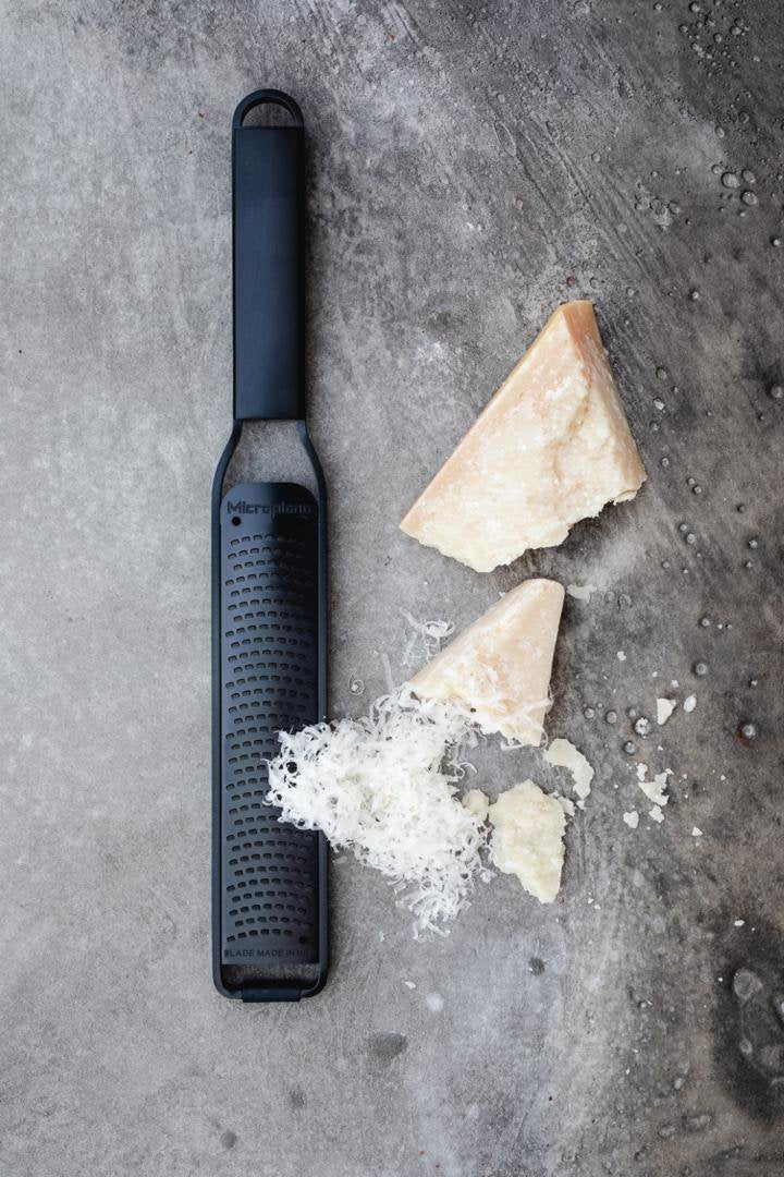 Black Sheep rifjárnin frá Microplane fangar þig með stílhreini hönnun, sterkbyggðu ryðfríu stáli húðuðu með PVD sem myndar vörn gegn rispum og oxun. Laserskorið og flugbeitt með 16,5 cm langan raspflöt. Fíni raspurinn (Zester) er fjölhæfur og hentar t.d fyrir sítrusbörk, harða osta, hvítlauk, múskat, eða annað sem má vera fínlega rifið.