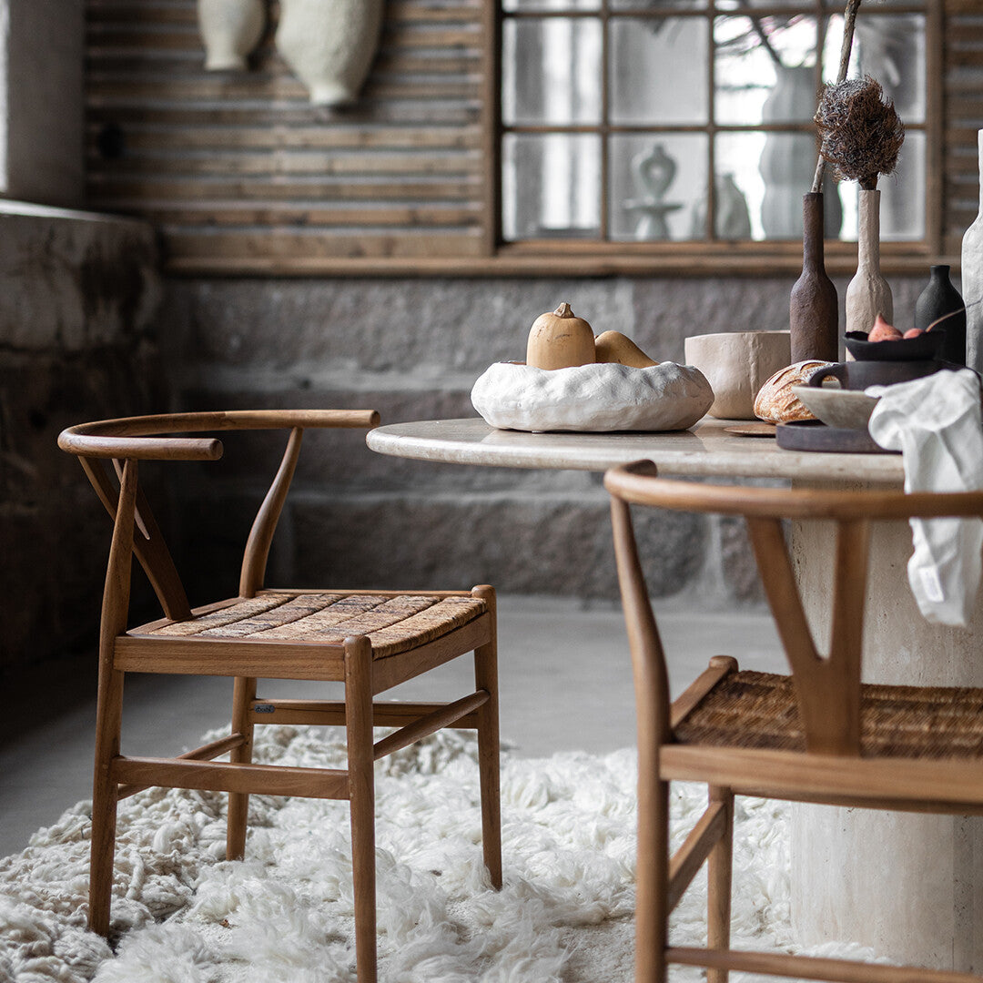 Aspen stólarnir eru stílhrein og tímalaus hönnun. Stólarnir eru úr tekkviði með handofnu sæti unnið úr bananalaufum. Bakstuðningurinn gerir stólinn mjög þægilegan, sem gerir þér kleift að njóta langra kvöldverða með ástvinum eða halla þér aftur í nýja uppáhalds stólnum þínum.