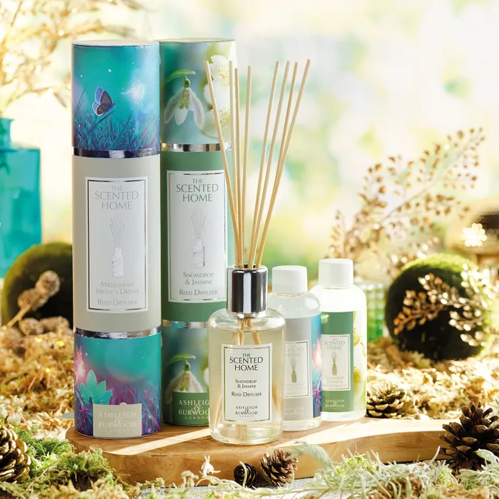 Ashleigh & Burwood vökvanum er hellt í glervasann þinn, stráin sett ofan í og ilmurinn fyllir herbergið.