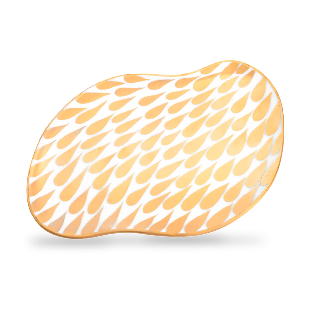 Skýjadiskur með mynstrinu Dropar er mótaður úr hágæða postulíni og handmálaður mikilli nákvæmni með þykkri 24 karata gyllingu. Yfirborð disksins er glerjað fyrir slétta, jafna og glansandi áferð.