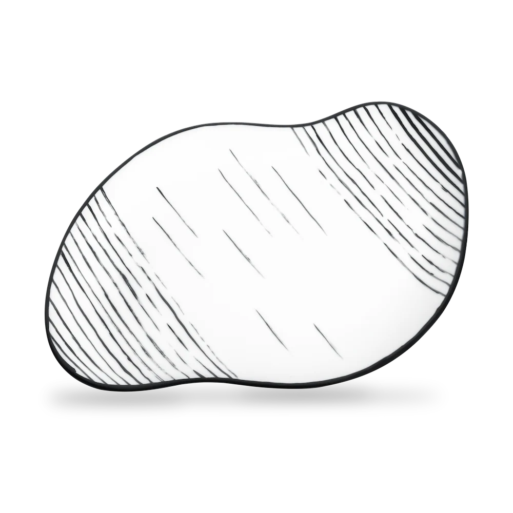 Skýjadiskur með mynstrinu Þoka er mótaður úr hágæða postulíni og er vandlega handmálaður með svörtum lit á hinn hvíta og náttúrulega lit postulínsins. Diskarnir eru glerjaðir fyrir slétta, jafna og glansandi áferð.