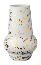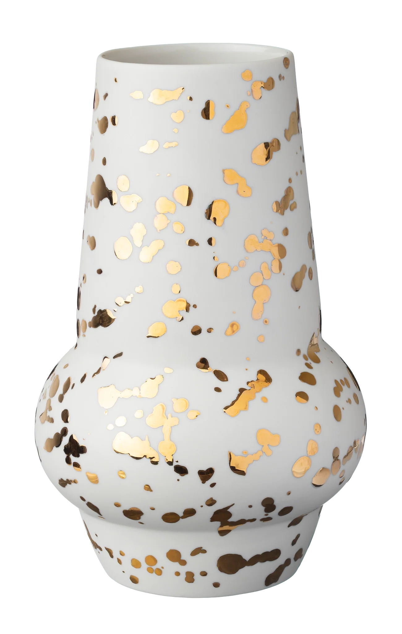 Strýtu vasinn með mynstrinu Regn er mótaður úr hágæða postulíni og handmálaður tvisvar af mikilli nákvæmni með þykkri og glansandi 24 karata gyllingu. Vasarnir eru tilvaldir fyrir þá sem eru að safna öðrum verkum eftir Ingu Elínu.