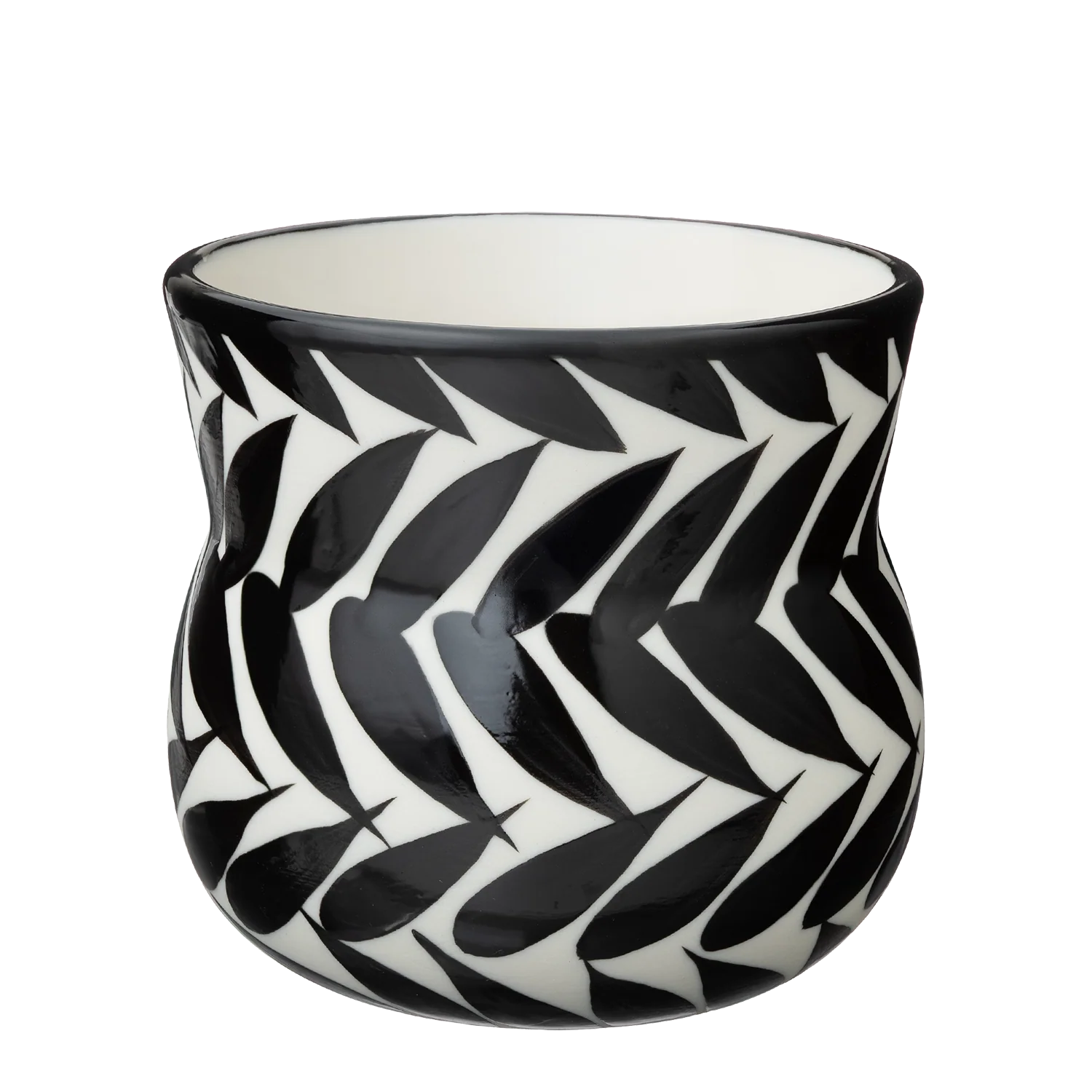 Veltibollinn með mynstrinu Fiskibein er mótaður úr hágæða postulíni og er vandlega handmálaður með svörtum lit á hinn hvíta og náttúrulega lit postulínsins.