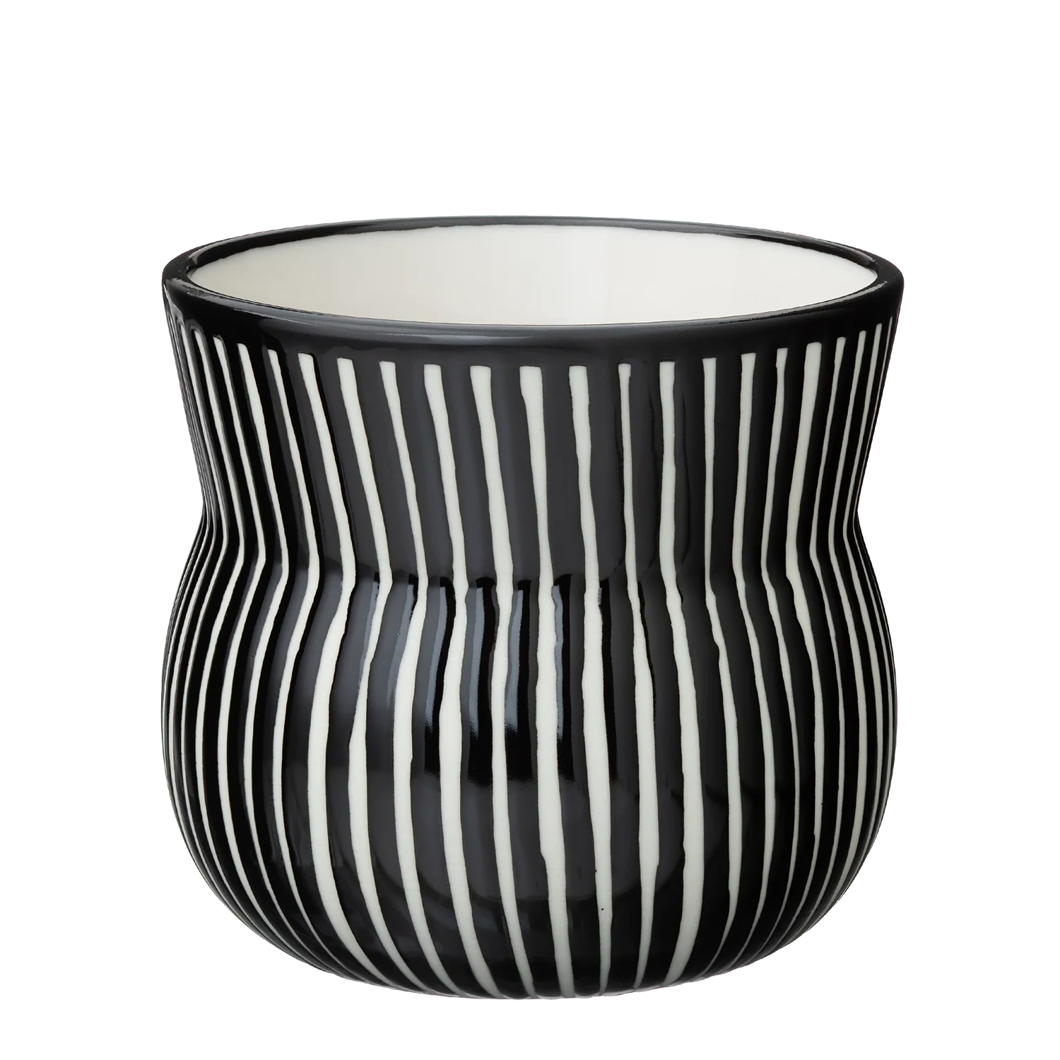 Veltibollinn með mynstrinu Foss er mótaður úr hágæða postulíni og er vandlega handmálaður með svörtum lit á hinn hvíta og náttúrulega lit postulínsins.