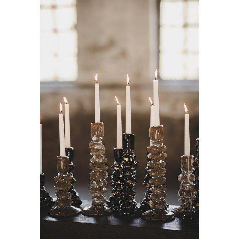 Carmella - a handblown candle holder that blends in and stands out! Meet Carmella, the candle holder that turns the glow of a flame into a piece of art. With its chunky shape and soft, playful silhouettes, Carmella almost looks like smooth caramels stacked on top of each other – a harmonious fusion of sculpture and function. Its abstract design makes Carmella a striking detail in any room, while the rounded forms create a warm and inviting feel. It looks just as beautiful on a set table as it does on a shelf, shining all on its own. Carmella is more than a candle holder - it's a smile in your interior.