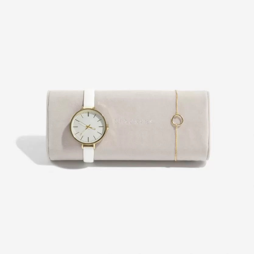 Stórt skartgripaskrín með loki - Taupe Raffia