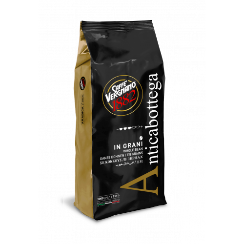 Antica Bottega kaffibaunir frá Caffe´Vergnano. Blanda sem er fengin með því að rista virtustu tegund kaffibauna, það er vel valdar Arabica kaffibaunir. Hæg ristun kaffibaunanna, sem helst í hendur við upprunaland hverrar tegundar fyrir sig, skilar sér í lokaafurð sem er sæt, með mjúku bragði, hárfínni sýrni og mikilli fyllingu. Blandan er örlítið krydduð með ávaxtarnótum. Niðurstaðan er úrvals kaffi með mjúku bragði og unaðslegum ilmi umlukið fínni góðru froðu.
