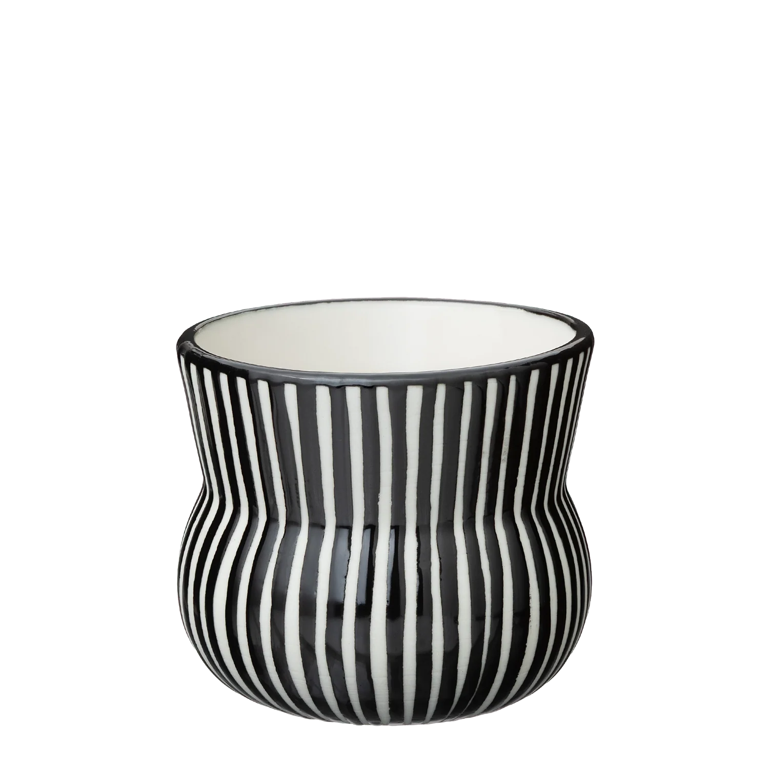 Espressobollinn með mynstrinu Foss er mótaður úr hágæða postulíni og er vandlega handmálaður með svörtum lit á hinn hvíta og náttúrulega lit postulínsins.