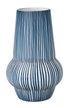 Strýtu vasinn með mynstrinu Foss er mótaður er úr hágæða postulíni og handmálaður í hinum mest einkennandi og klassíska bláa lit Ingu Elínar. Vasarnir eru tilvaldir fyrir þá sem eru að safna öðrum verkum eftir Ingu Elínu.