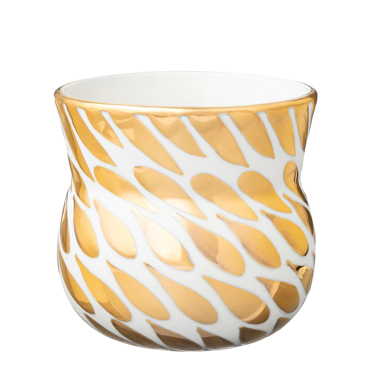 Veltibollinn með mynstrinu Dropar er mótaður úr hágæða postulíni og er mynstur bollans handmálað tvisvar með þykkri og glansandi 24 karata gyllingu.